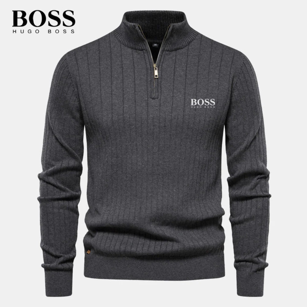 Discover this men's zip-collar sweater, designed for those who value elegance and comfort. With its slim fit and ribbed fabric, this sweater offers a modern look while providing optimal comfort. Its sturdy zipper and meticulous details showcase exceptional finishing.